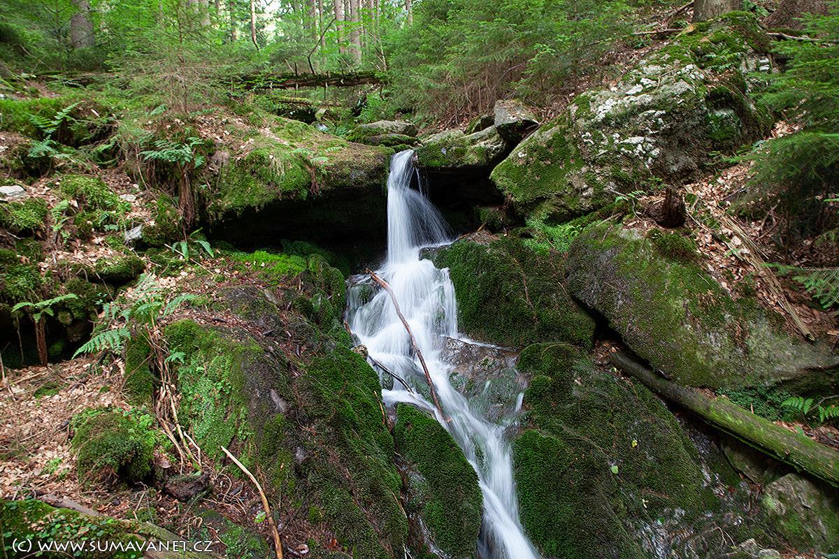 Dvojice menších (ale krásných) vodopádů na levostranném bezejmenném přítoku Úhlavy, nedaleko Zadních Hamrů.